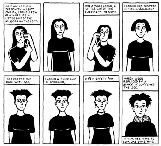 Persepolis Two differs from Persepolis One in the sense that it is a nuanced coming-of-age novel of Marjane’s journey from youth to adulthood (Satrapi, 2004). Coincidentally, after moving to Austria by herself, Marjane has a phase of trial and errors in her love life, residence, aspirations, and social circle (Satrapi, 2004). The beginning of this ‘trial and error’ phase within her life start with her change in appearance, and this change is shown progressively through Satrapi’s use of solo drawings (Satrapi, 2004).